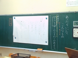 2年生は、国語「あったらいいなこんなもの」を各自考え、ペアになって互いに何を考えたか説明をし合い、それに対して質問をする学習を行いました。